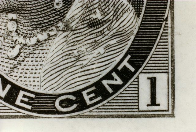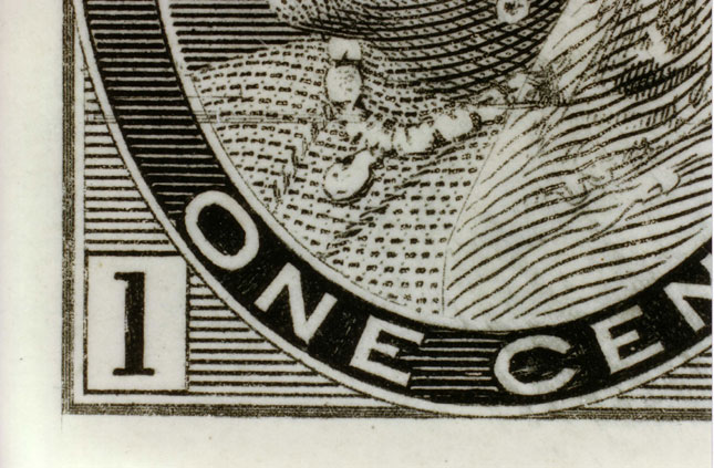is of an issued stamp showing left detail and part of the