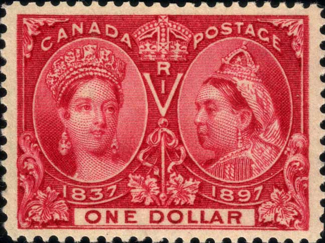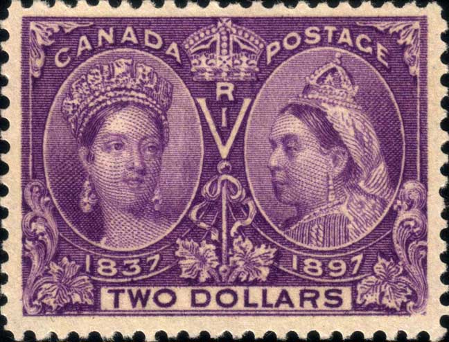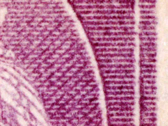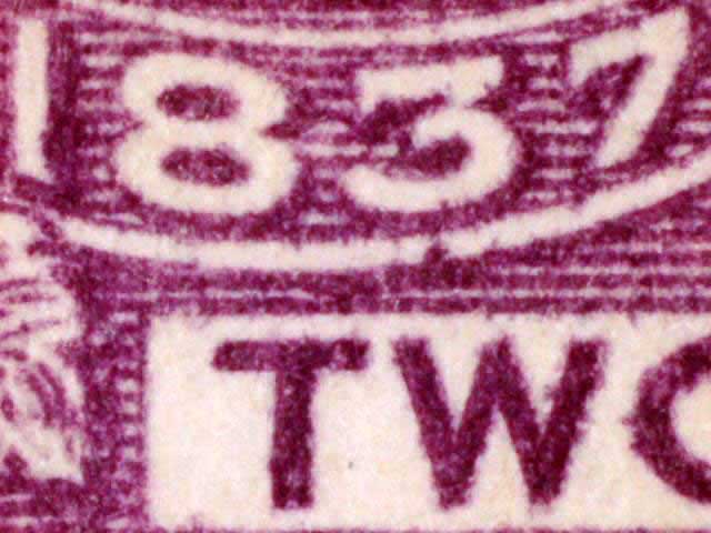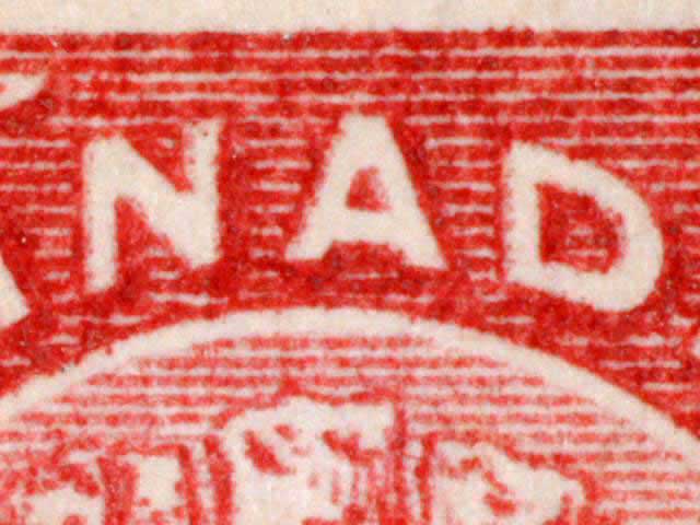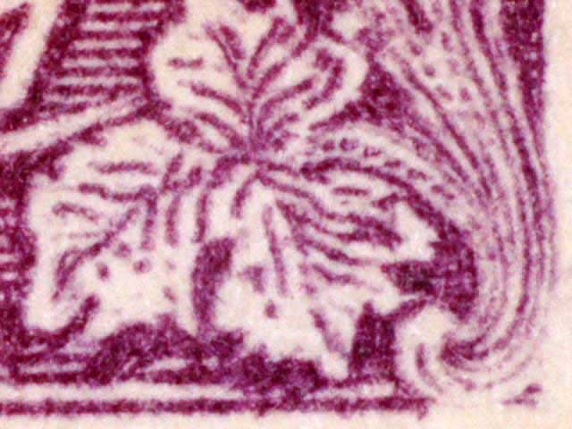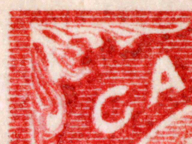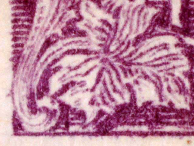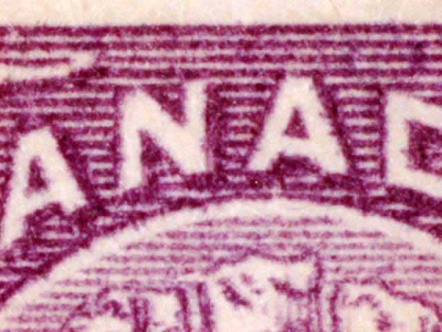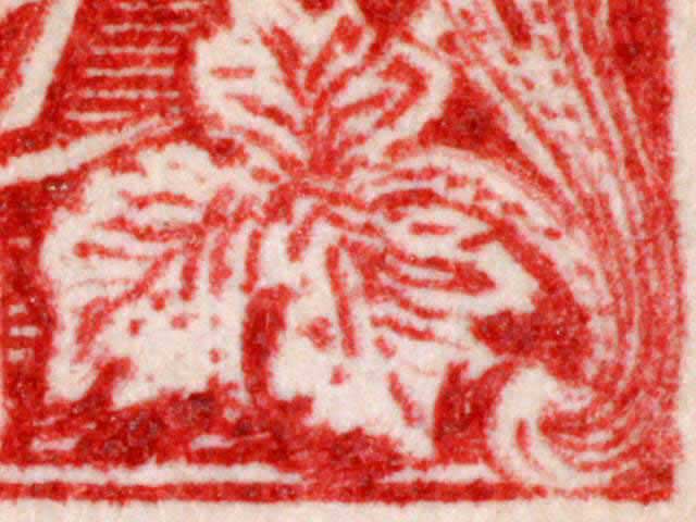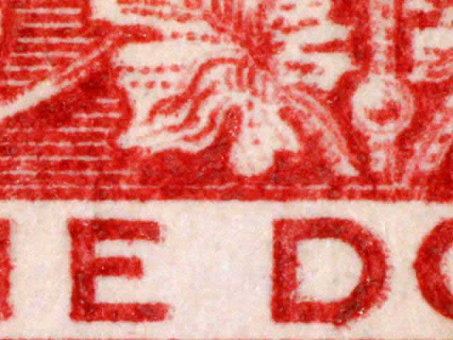 The first stamp is the $1 Jubilee, while the second is the $2 Jubilee. The $2 has what appears to be a definite re-entry in the centre area in the ‘R’ & ‘I’ as well as the lower left area of the left portrait oval, which shows clear extensions of the background lines into the white oval. However, there are also many signs of slippage as well. (Re-entry AND slip print combined? It could happen!)