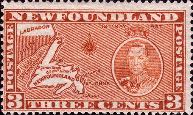 Coronation Issue 1937 3¢ Newfoundland Map (orange brown)