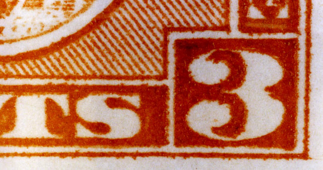 Interestingly, this stamp also shows a slight re-entry of the left vertical frameline that is not present on the earlier states. |