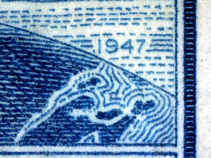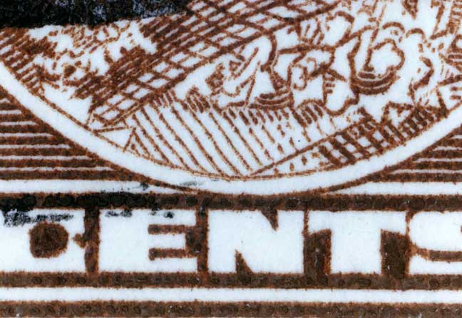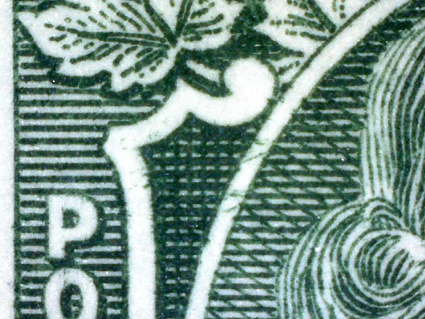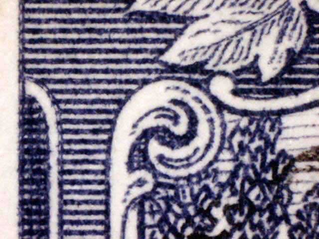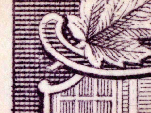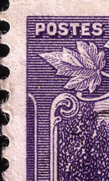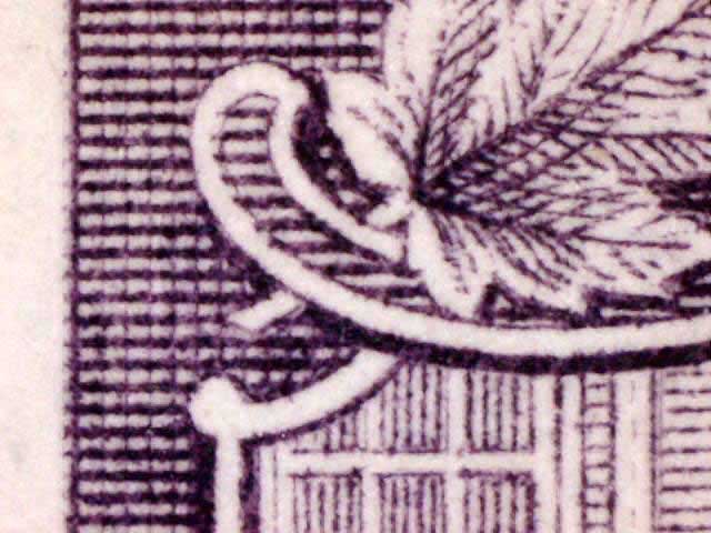 #208 1934 3¢ Jacques Cartier Minor Re-entry There is slight doubling found in the lower right corner, including many of the tiny squares to the right of CENTS. ^ From the RETrimble Collection ^ *3 Scott # *4-1 Scott #211 1935 1¢ Princess Elizabeth Misplaced Entry Plate Position 2UR88 There is a subtle misplaced entry on this stamp showing mainly in the white oval surrounding the portrait, especially to the upper left of the Princess’s head. ^ From the RETrimble Collection ^ Scott #211 1935 1¢ Princess Elizabeth Re-entry Plate Position 2UR87 There is a nice clear re-entry of the shading lines of the shoulder of the Princess. ^ From the RETrimble Collection ^ Scott #211 1935 1¢Princess Elizabeth Re-entry Plate Position 2UR97 There is slight doubling of the bottoms of the letters of PRINCESS ELIZABETH below the portrait, and below the N of CENT. ^ From the RETrimble Collection ^ *5 Scott # *6 Scott #213 1935 King Geo V Silver Jubilee Issue 3¢ King Geo V & Queen Mary Re-entry This re-entry shows doubling of the upper left side, including the frameline, part of the scroll, and the curved lines to the left of POSTES. ^ From the RETrimble Collection ^ Scott # Scott # Scott #216 1935 13¢ Royal Yacht Sharp Re-entry Plate 1, Position #71 There are numerous positions showing re-entries such as this one, but this is one I have been able to plate, having it in an imprint block. Note the doubling in BRITANNIA. ^ From the RETrimble Collection ^ Scott # Scott #218 1935 Geo V Pictorial Issue Re-entry While certainly not significant, this delightful little re-entry shows sharp doubling of the curved line within the scroll at right-centre, along with several veins of the leaf below it, the border of the portrait oval to the left of it, and the bottom of the portrait oval itself, including some of the diagonal lines below the King's medals. This stamp was in the collection of Hans Reiche when photographed. ^ From the RETrimble Collection ^ Scott #219 1935 Geo V Pictorial Issue Re-entry While torn between the certainty as to whether this is a re-entry or a slip print, I am including it here in the hope that another identical copy will turn up to confirm it as a re-entry. I have searched through many, many hundreds of these stamps, and while I have yet to find a second copy, I never came across another slip print either. Yes, it is somewhat blurry, but there is just something about it that says 're-entry' to me. Anyone else have one of these??? (From the Hans Reiche collection) From the Hans Reiche collection Scott #223 1935 10¢ R.C.M.P. Plate Position ? Re-entry Similar to the above Yacht, here we have doubling of R.C.M.P., the vertical frameline to the left, and the blades of grass above. There are numerous examples of this re-entry, as well. ^ From the RETrimble Collection ^ Scott #224 1935 13¢ Charlottetown Strong Re-entry This re-entry shows strong extensions of the horizontal lines in the curved design to the left of the leaf. Other spots of doubling can be found in surrounding areas. ^ From the RETrimble Collection ^ Scott #224 1935 13¢ Charlottetown Re-entry This stamp shows slight extensions in the same area as the above stamp, but also doubling of the upper half of the left frameline. In the lower picture, extensions of the horizontal lines in the design above the 'T' of POSTES can be seen. ^ From the RETrimble Collection ^ Scott #224 1935 13¢ Charlottetown Minor Re-entry This stamp shows slight doubling of the upper frameline. ^ From the RETrimble Collection ^ Scott #225 1935 20¢ Niagara Falls Plate Position 1UR35 Major Re-entry Here we have doubling on the left side of the design, including POSTES and its frame, the inner vertical frameline of the central image, and the inner vertical line behind the leaves. This stamp can be found with selvedge attached on the right, as it is from position 35 on the pane of 50. ^ From the RETrimble Collection ^ Scott #226 1935 50¢ Parliament, Victoria B.C. The Major Re-entry Plate 1, LR Pane, Position #25 This is the well-known Major Re-entry on the 1935 50¢ Parliament. Sharp doubling can be seen in the oval above CANADA and in the bottoms of 'ANAD.' Often overlooked is the doubling found near the bottom of the design above CENTS. This re-entry is usually regarded as the 'last' of the majors. The re-entries that followed for years to come are quite minor in comparison, although I would say the doubling of POSTAGE on the 6¢ Pearson booklet stamp is now a true rival. ^ From the RETrimble Collection ^ Scott #226 1935 50¢ Parliament, Victoria B.C. Minor Re-entry While most collectors know about the Major Re-entry on this issue, many are not aware of the minor ones that exist as well. On this one, almost the entire left edge of the design is slightly doubled, including the 'P' of POSTES and the inner edge of the curved white bar at left-centre. ^ From the RETrimble Collection ^ Scott #231 1937 1¢ King George VI Extremely Minor Re-entry Almost not worth showing, here we see a very tiny re-entry with doubling of the horizontal line below CENT. ^ From the RETrimble Collection ^ Scott #233 1937 3¢ King George VI Re-entry There is doubling of the line below 'NTS.' ^ From the RETrimble Collection ^ 2¢ War Memorial Minor Re-entry While quite minor, some of the horizontal lines of the steps are slightly doubled. There are numerous positions of this re-entry. ^ From the RETrimble Collection ^ 4¢ Citizenship 1947 Minor Re-entry Hans Reiche in his variety handbooks as far back as 1951 (Canada's Major & Minor Varieties From 1897 Up) listed a stamp showing 'partial doubling of stamp'; 1982 (Canada Steel Engraved Constant Plate Varieties) "Re-entry, doubling below all letters of CITIZEN, CITOYEN, CANADA & 4 Cents." Each book gave the plate as Plate 1 UL Pane. In Hans' Volume 7 of BILLIG'S SPECIALIZED CATALOGUES, CANADA: Constant Plate Varieties (likely 1953 - no date given, but last stamp he includes is from 1953), he stated that "only 18 complete sheets known.