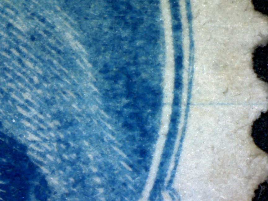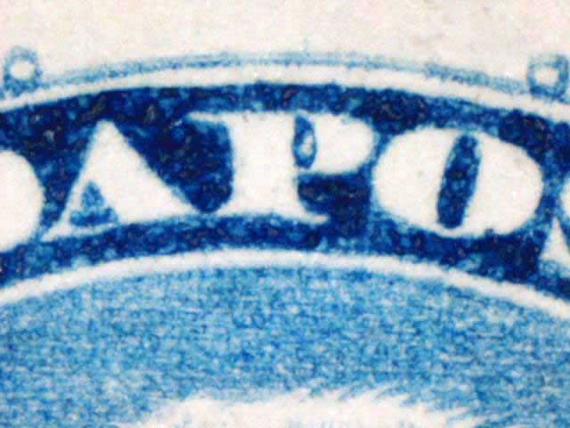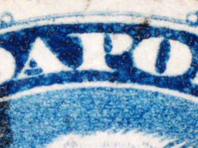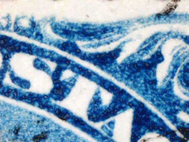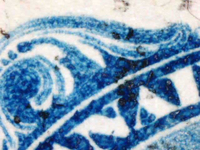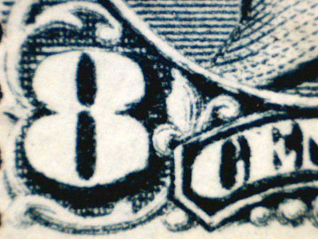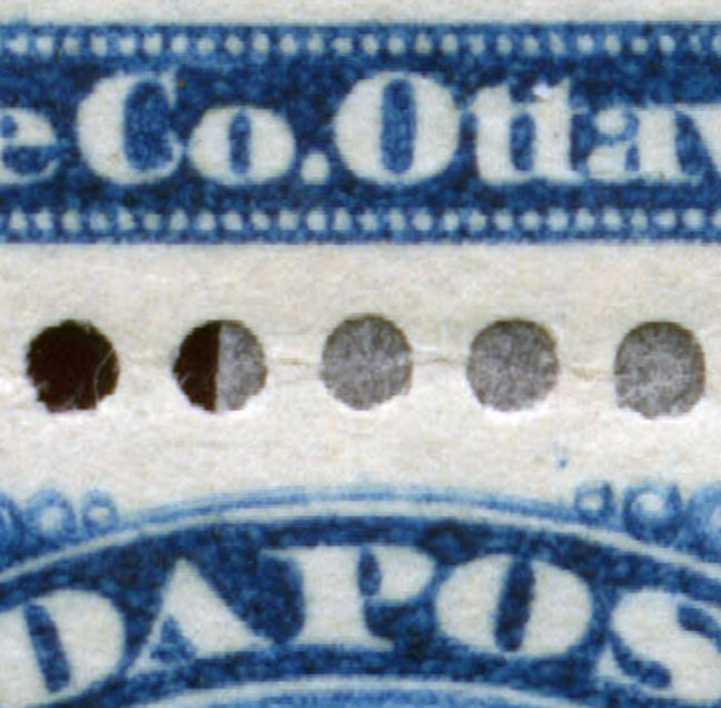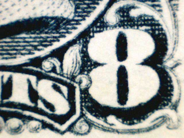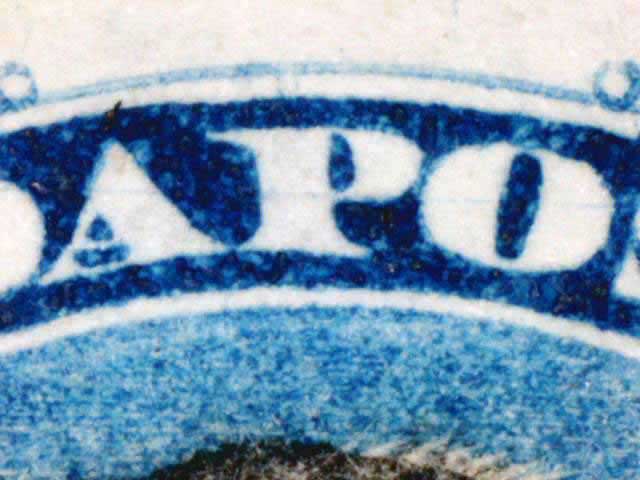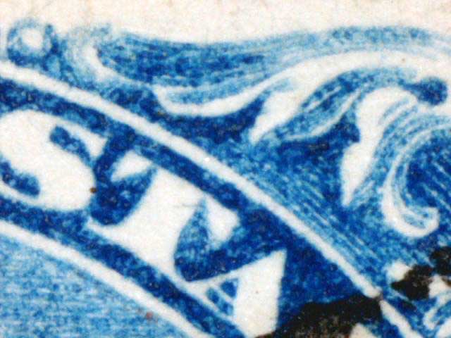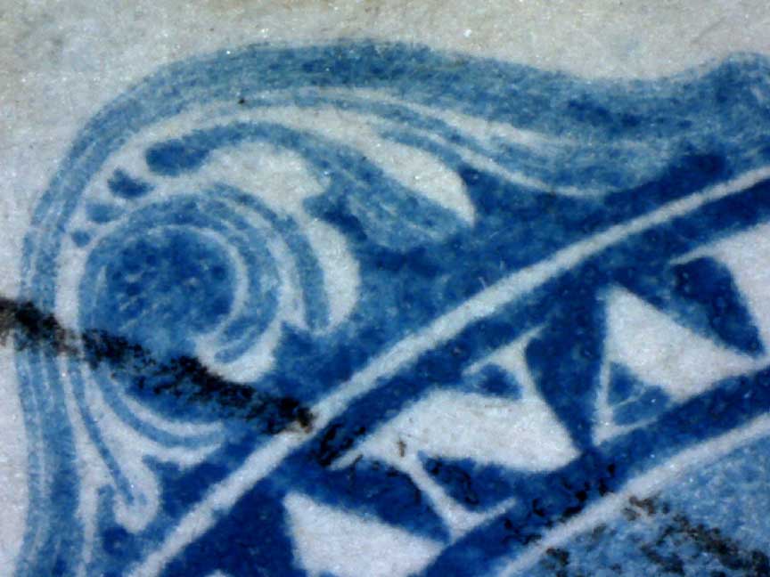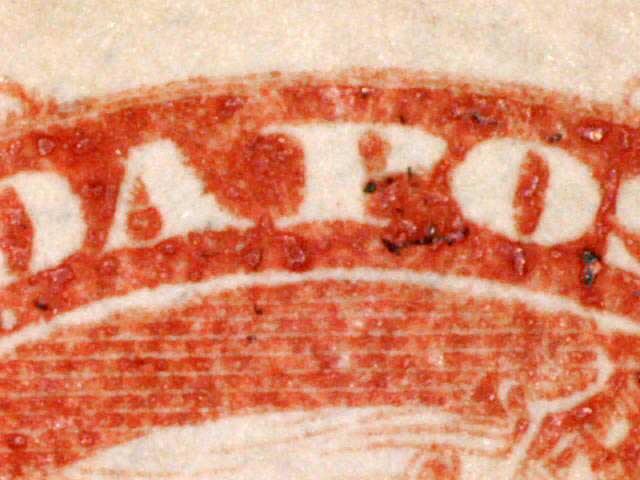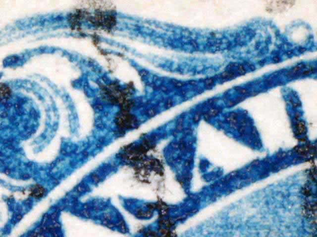 Major! There was also some discrepancy about the plate position over the years. Some said it was position 6, while others said 5. In Vol. 41, No. 5 of BNA Topics, George Arfken published the best work on the re-entries of this stamp to date. It shows that almost the entire top row of the sheet exhibits doubling of the top-centre framelines and illustrated them with line-drawings. This study also proved finally that the so-called 'major' is indeed from position #6. (This is found beneath the right half of the top imprint.) Along with doubling of the top-centre frameline, there is doubling of the upper right ornament and the portrait oval below 'A PO.' Position 6 also has a faint guideline through the left margin into the 'C' of CANADA. I have attempted to plate this stamp and the others shown below from George's article. ^ The above plate piece confirming position 6, Courtesy of John Newman ^ ^ From the RETrimble Collection ^ Closeup of the upper frameline showing the doubling of the frameline as well as the ornamental balls on either side Guideline from margin through the 'C' as described years ago by Hans Reiche Another guideline on the right extending through the right margin from below the mid-point Detail of UL corner ornament showing doubling Detail of UR corner ornament showing doubling ^ From the RETrimble Collection ^ Below I have reproduced the two tables from BNA TOPICS, Sept.-Oct. 1984, with the descriptions and line drawings from George Arfken's article, THE RE-ENTRIES OF THE 50¢ WIDOWED QUEEN, p.11-14. Also with the tables is a description from the same article regarding the guidelines that are visible on a number of the plate positions. This information is extremely helpful in distinguishing between similar positions. *4 Fifty Cents Scott #47 Re-entry Plate Position #7 This stamp shows the nice, even doubling of both top-centre lines. It also has the faint central guideline at left-centre as described by Arfken above. ^ From the RETrimble Collection ^ *5 Fifty Cents Scott #47 Re-entry Plate Position #8 Here we see the faint remnants of a re-entry above the 'P' of POSTAGE, as mentioned in Arfken's text above. Note the small line of doubling in the back of the 'P' as well. This stamp is the left of a pair in my collection, and with the unique nature of the re-entry, the plate position is pretty certain. This means the position of the following stamp, #9, is also certain. ^ From the RETrimble Collection ^ *6 Fifty Cents Scott #47 Re-entry Plate Position #9 Unfortunately, the black spot of cancel above the centre of 'PO' obliterates the tiny dot of colour in the broken inner line, as seen above in the diagram, but as mentioned above, this stamp is the right of a pair in which the left stamp has been clearly identified as position #8. This stamp also has the faint central guideline at right-centre, as described in the text above. It is uncertain as to whether the mark in the 'T' of POSTAGE is constant. ^ From the RETrimble Collection ^ Fifty Cents Scott #47 Re-entry Plate Position #2 This stamp shows clear doubling of the upper centre frameline. There also appears to be a scratch through 'A PO.' ^ From the RETrimble Collection ^ Fifty Cents Scott #47 Re-entry Plate Position Unknown #2 This is another uncertain position. The doubling is even wider than the so-called 'major' of #6, but there is no guideline visible. ^ From the RETrimble Collection ^ Fifty Cents Scott #47 Re-entry Plate Position Unknown #3 This is another uncertain plate position. NOTE: Arfken also mentioned in his article that having examined the stamps from the lower rows of the plate, some positions do show a "slight doubling" of the top frame and "a broadening or smudging of the corner lines," but that NONE of them seem to have major re-entries. Considering the amount of doubling he does describe as 'major,' I would think that these re-entries with "slight doubling" on the rest of the plate must be VERY minor indeed. Therefore, my three 'unknowns' here are likely from the top row of 'majors.' ^ From the RETrimble Collection ^ Fifty Cents Scott #47 Re-entry Plate Position # Fifty Cents Scott #47 Re-entry Plate Position # *12 Fifty Cents Scott #47 Plate Position #10 The scan of this position was submitted by Glenn Archer to show that position #10 in the top row is sharp and not re-entered. This coincides with Arfken's chart, above. Glenn owns a pair that he had correctly determined to be pp9-10 and by comparing his pair to my pair of pp8-9, we were able to confirm that for him. This stamp, then, is shown for reference purposes only. Courtesy of Glenn Archer Return to Index Return to Listings Page